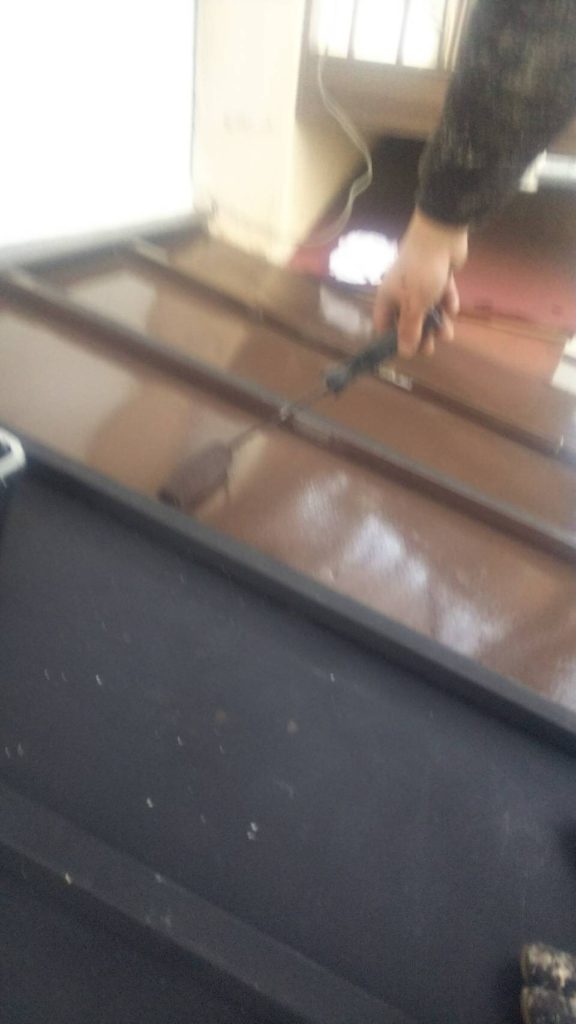 スクレーパーで古いコーキングを綺麗に撤去します。