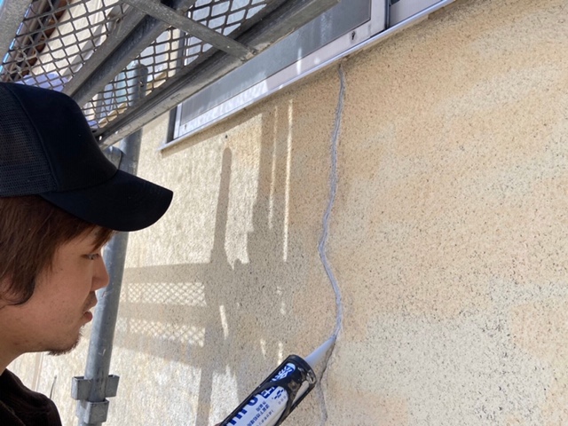 Vカット後コーキングを充鎮します。