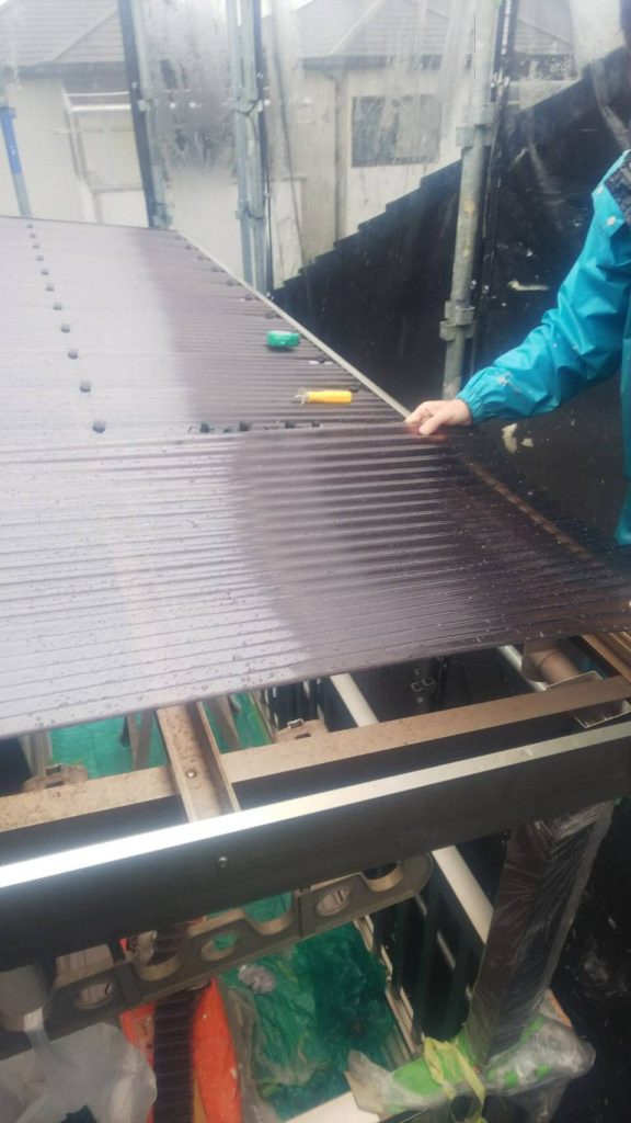 ベランダの屋根も新しいものに貼り替えていきます^^