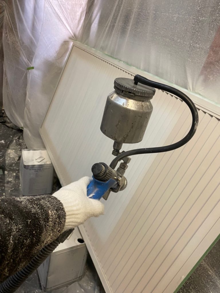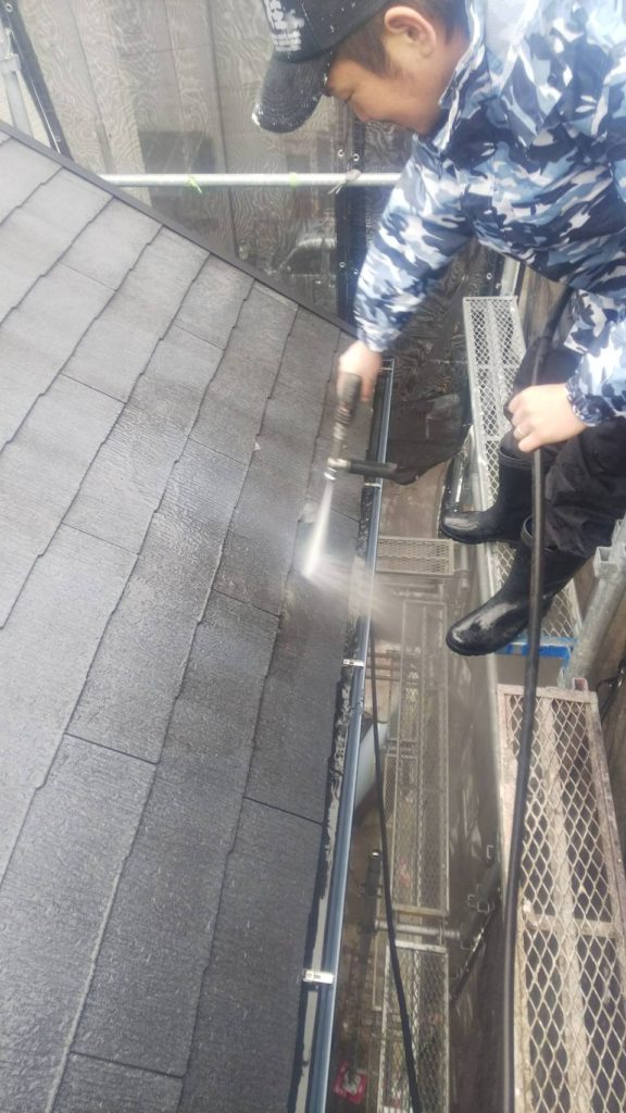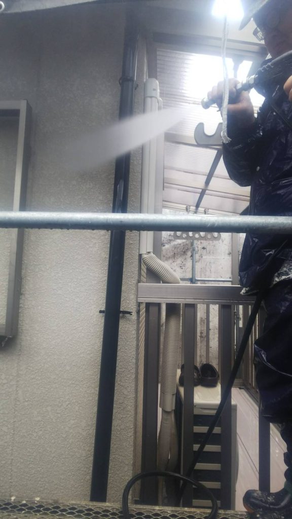 高圧洗浄機でしっかりと落として塗装作業に入ります。