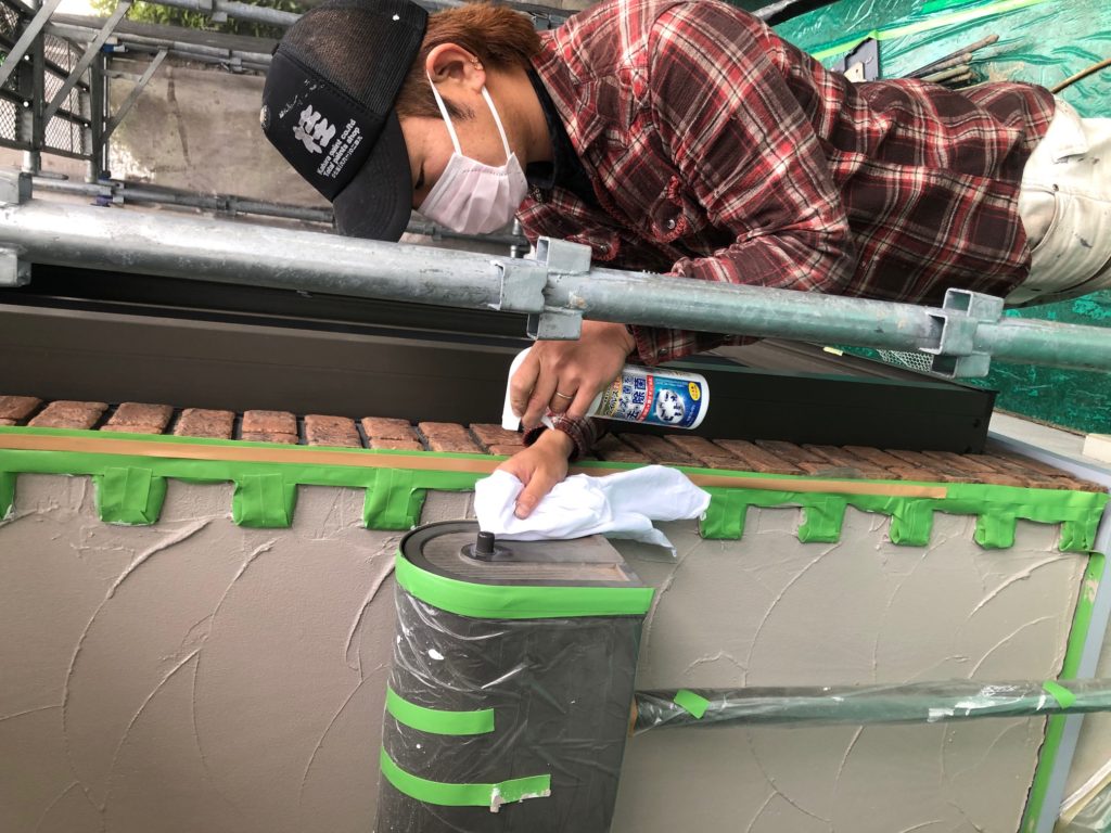 ドアノブやポストなど養生する際どうしても触れてしまいます。