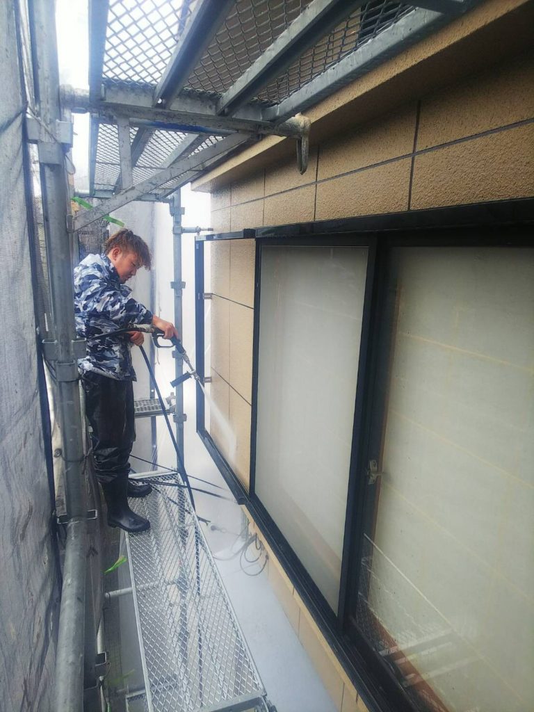 高圧洗浄から丁寧に行っていきます^^