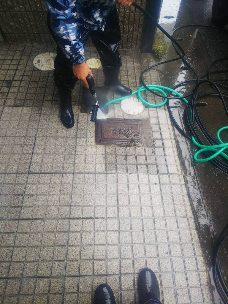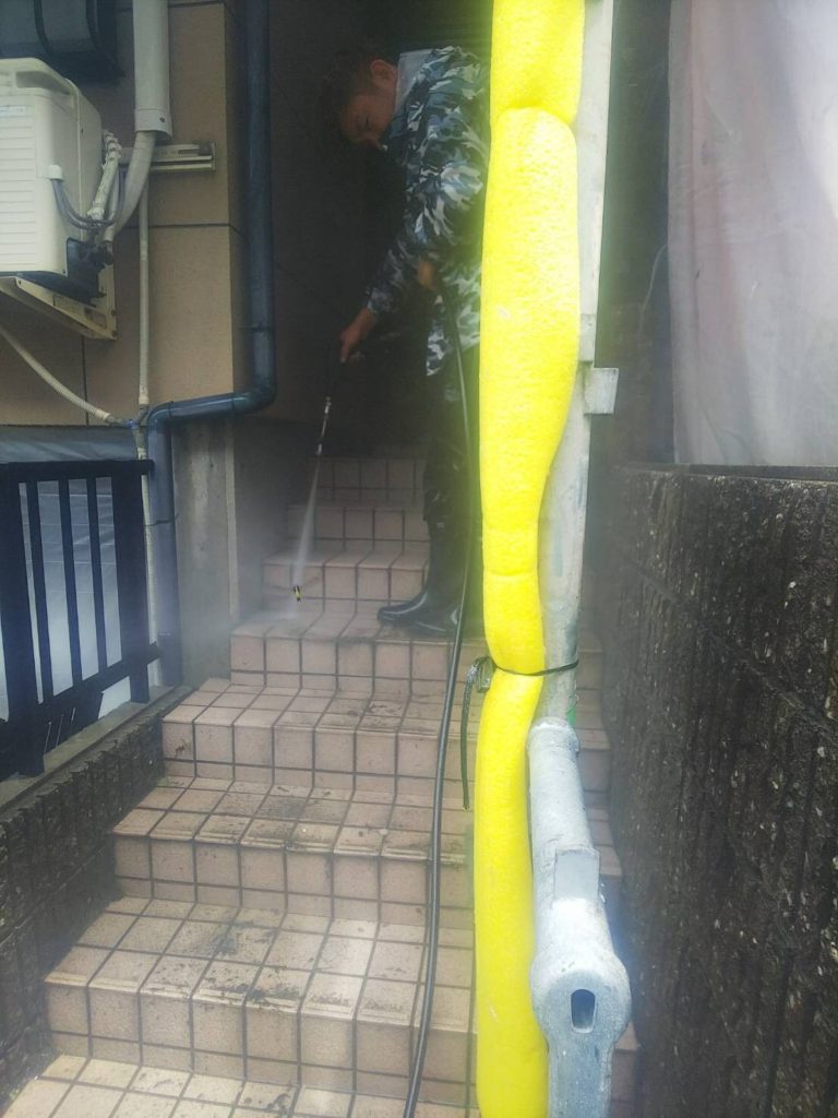 高圧洗浄で綺麗に汚れを落としていきます!!