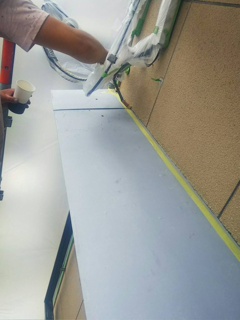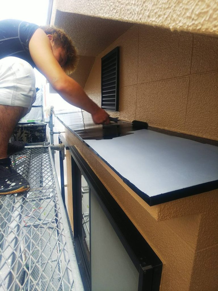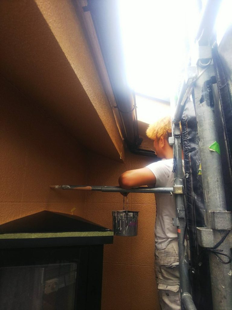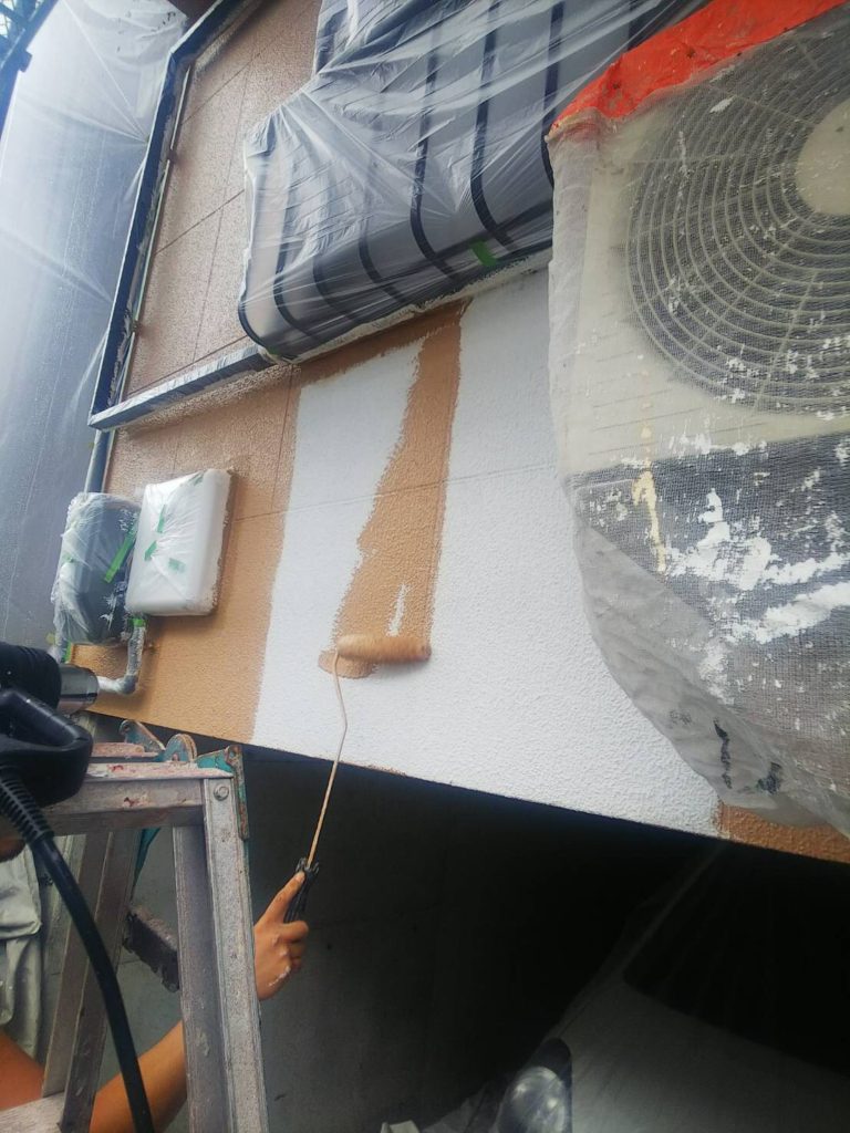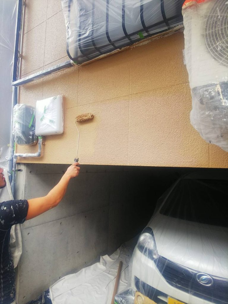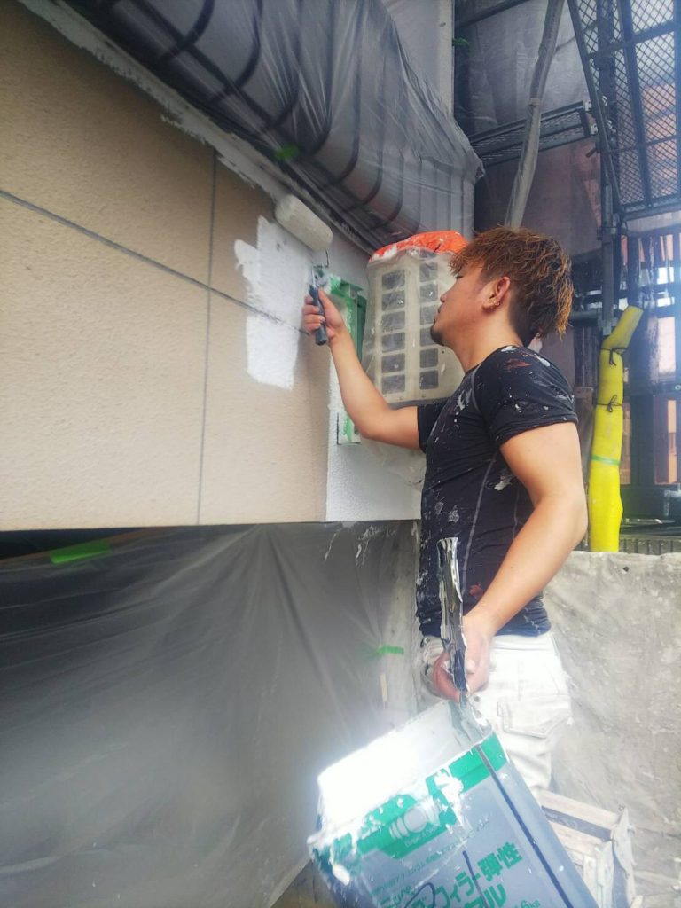 下地処理完了後に下塗り作業に入ります。