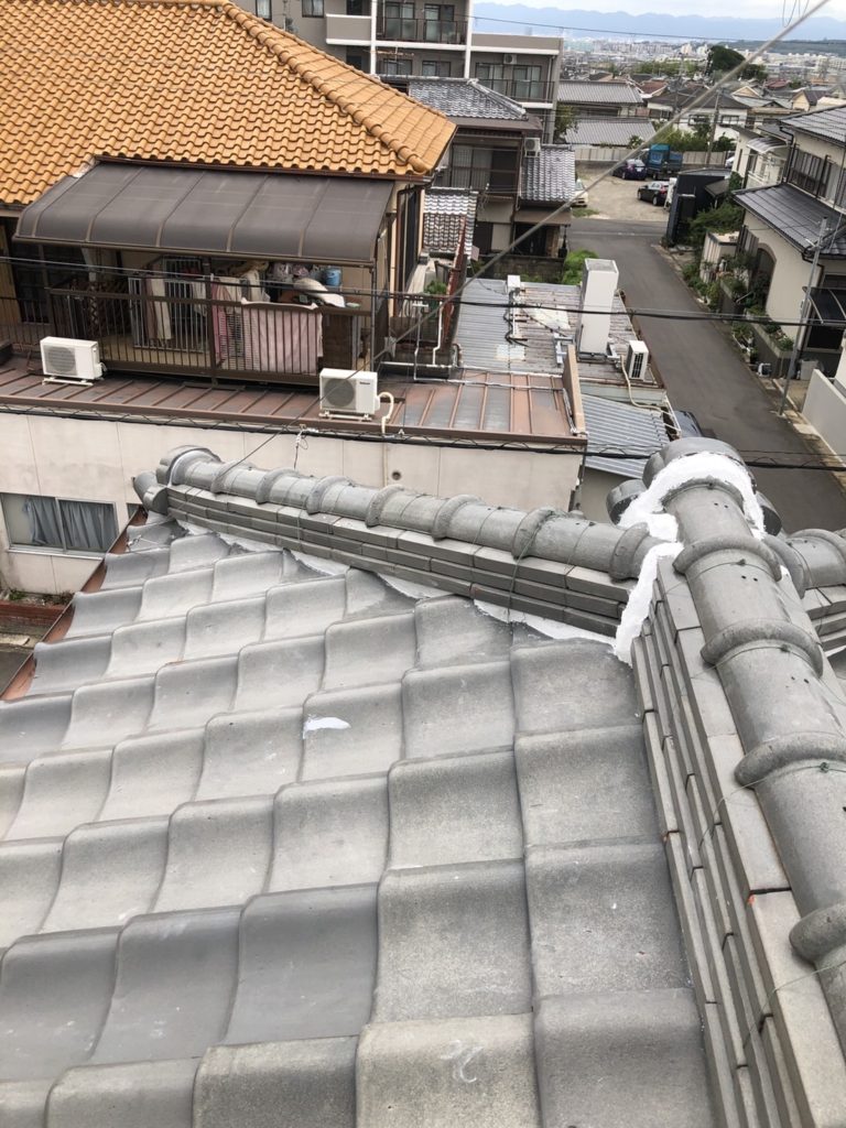 大屋根と下屋根の漆喰もとれていたりなくなっていたりしたので