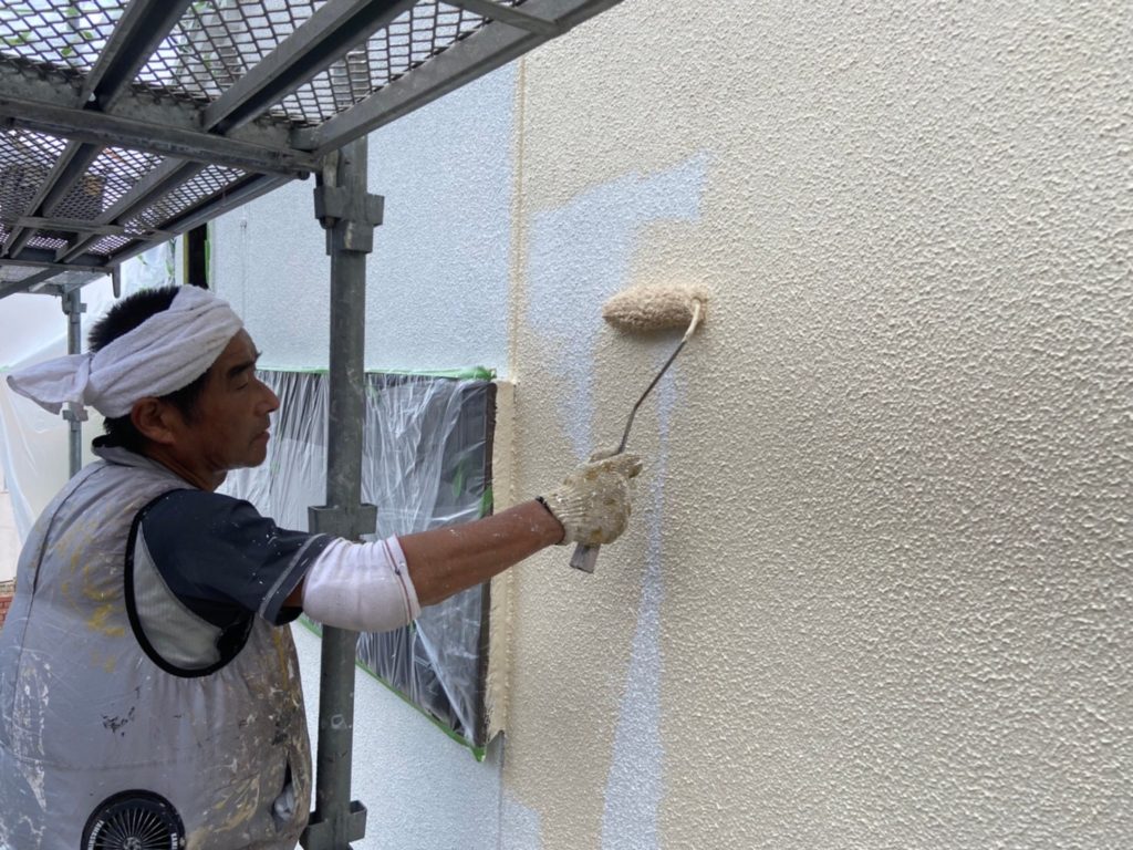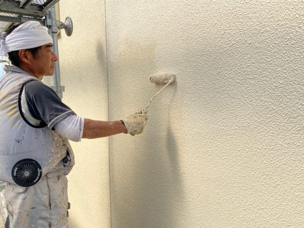 微弾性の下地調整剤で下塗りしていきます。
