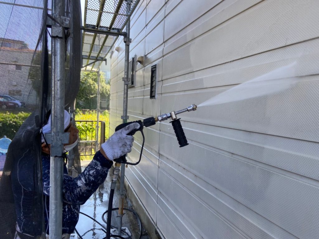 外壁の高圧洗浄を行っていきます。
