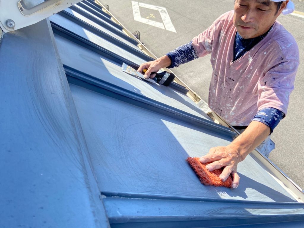 ケレン作業を行い錆止めを塗って