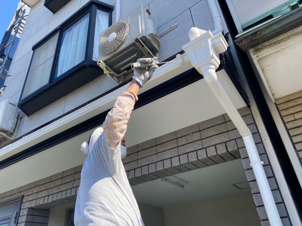 玄関の軒天と雨樋もしっかり塗装させてもらいました!!