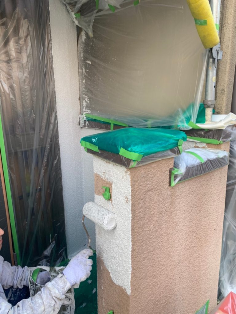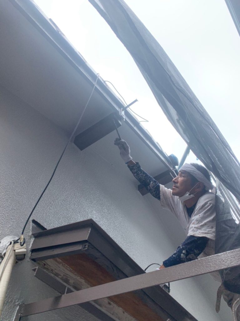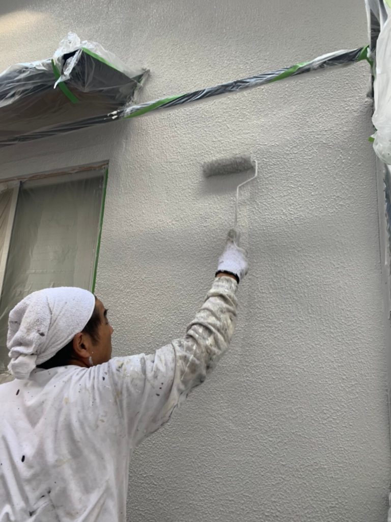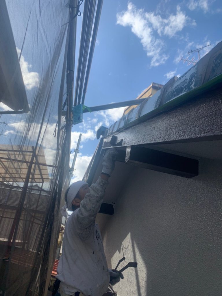 濃厚な上塗り材を2回塗りで外壁は完了です!!