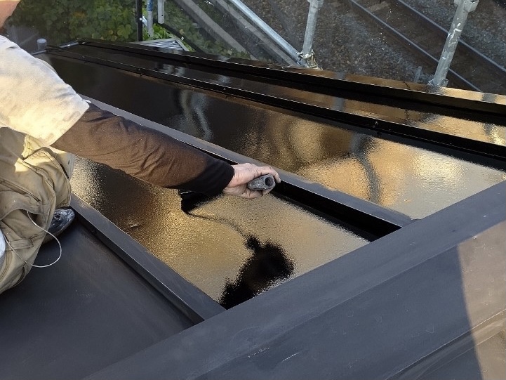 錆止めを塗り残しのないよう丁寧に塗って