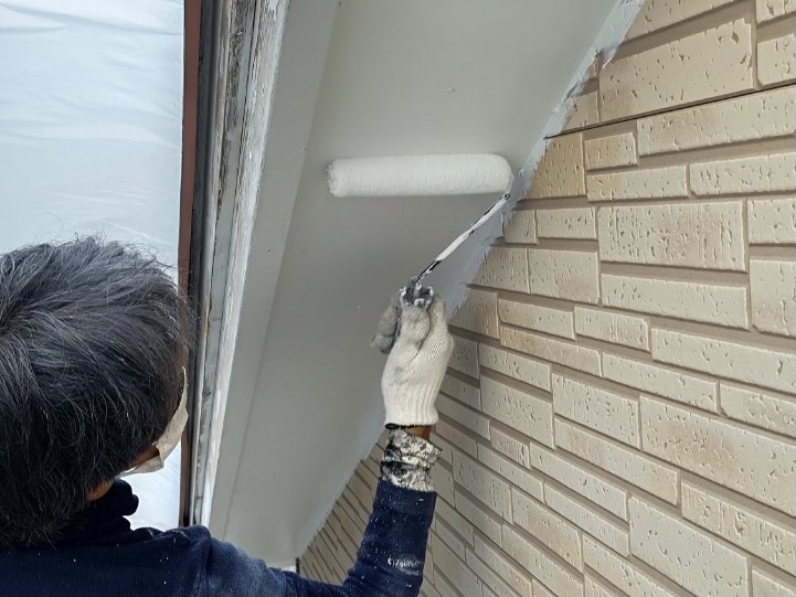 軒天も下地処理を行い2回塗りで仕上げていきます^^
