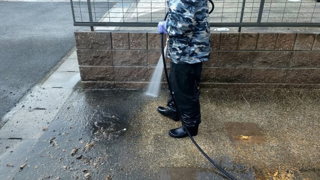そして屋根・外壁・土間と上から高圧洗浄機で