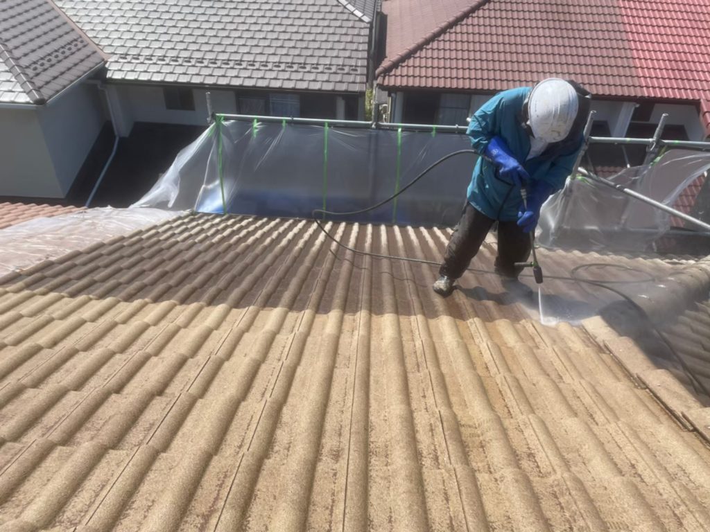 まずは屋根の高圧洗浄です。