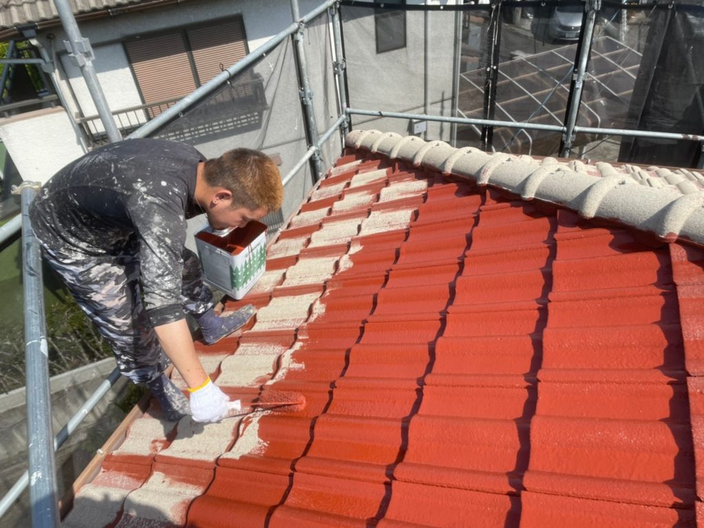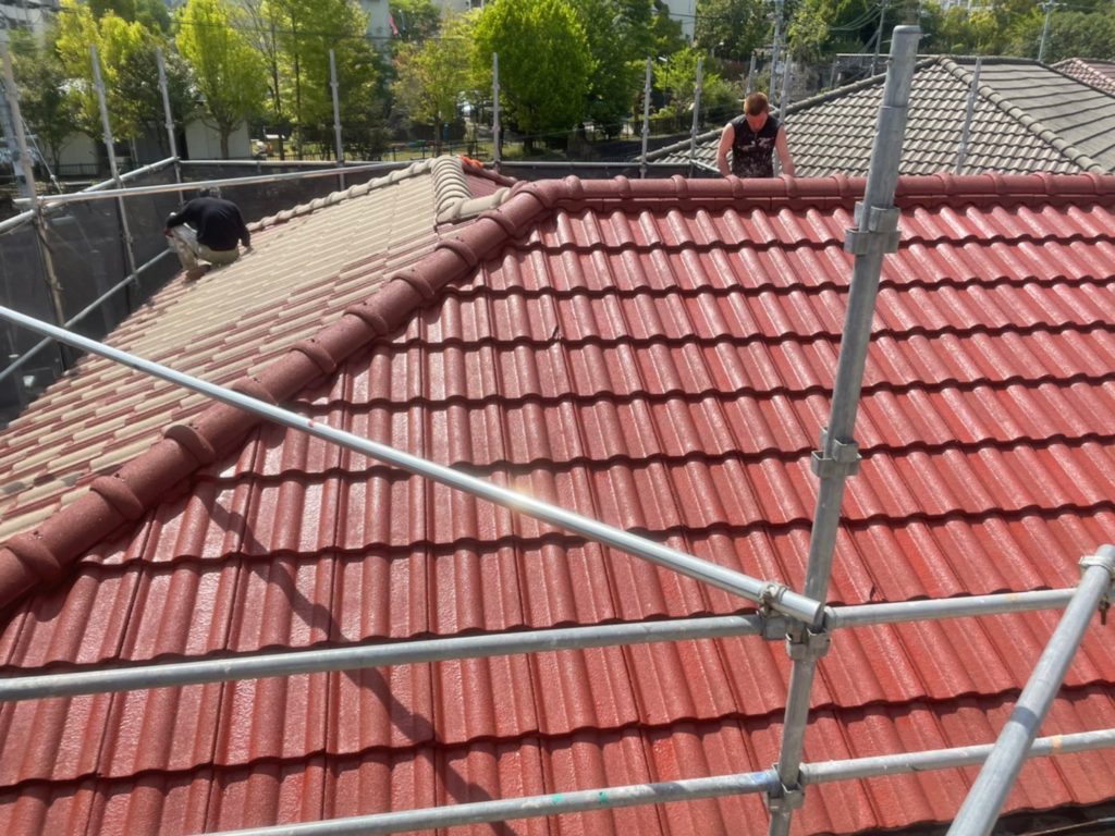 屋根の塗装です。モニエル瓦専用塗料で