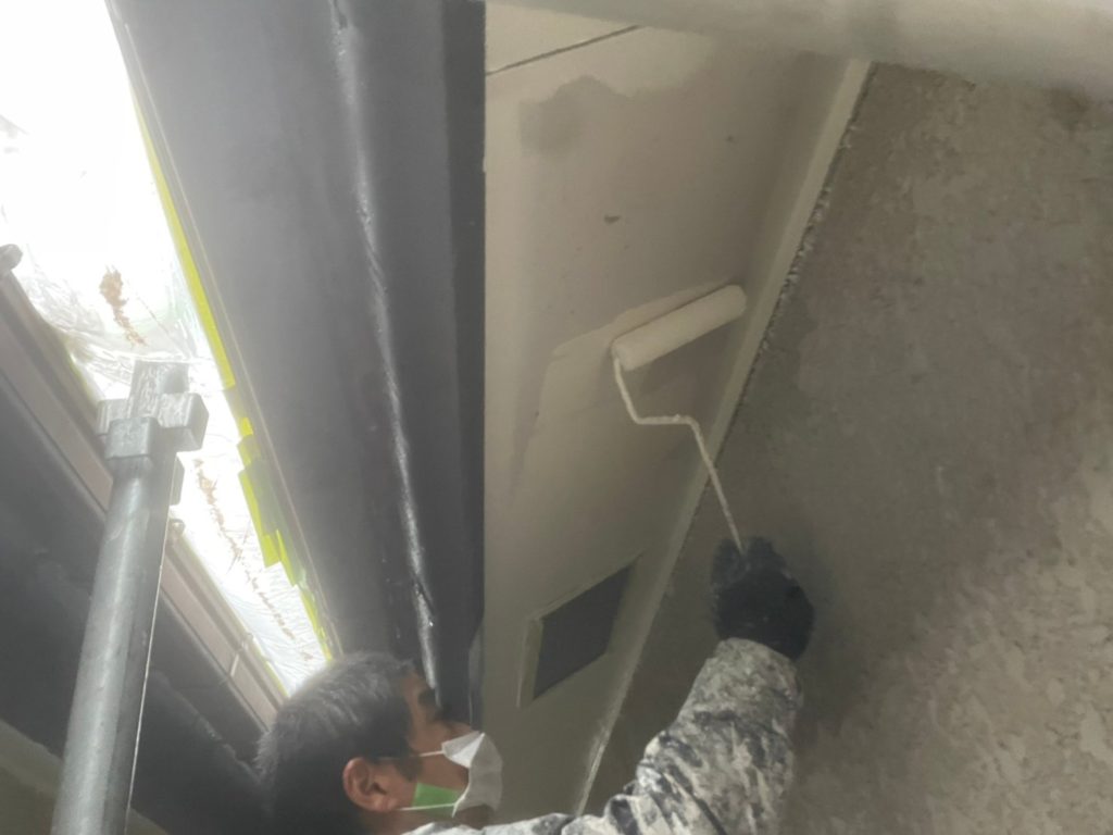 外壁塗装前に軒天の塗装です^^