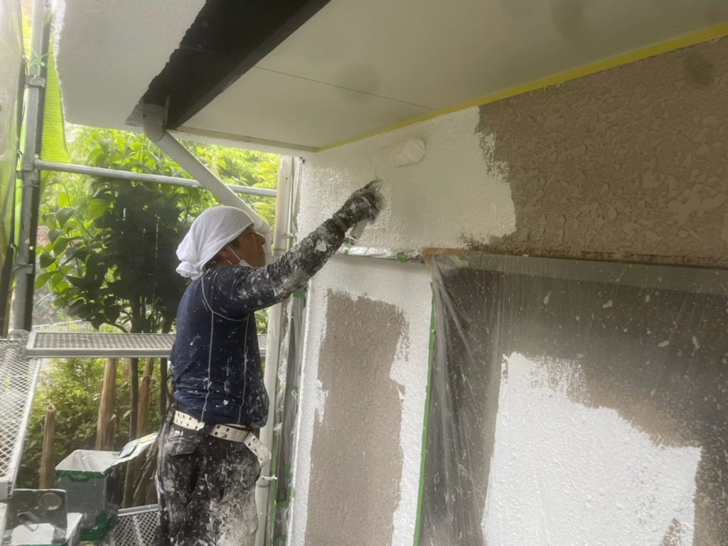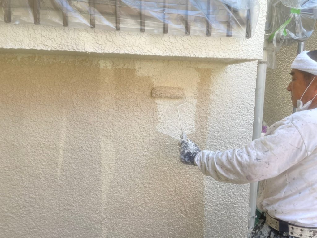微弾性の下塗り材を均等に塗布していきます。
