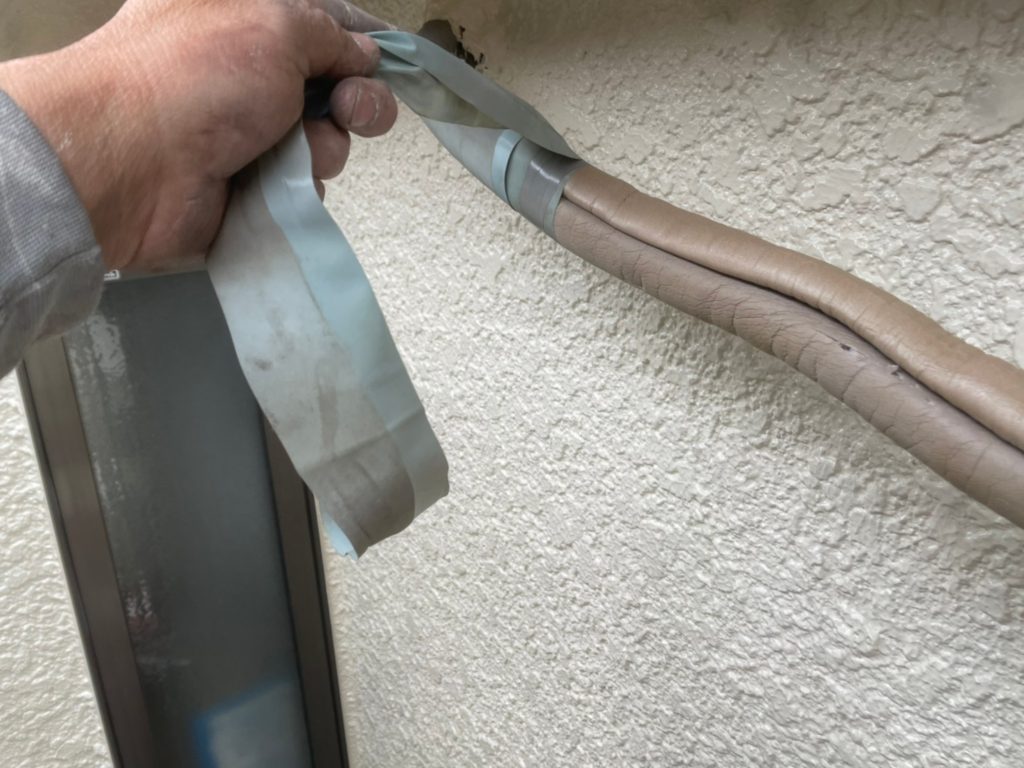 その際に配管テープも劣化しているので巻き直します^^