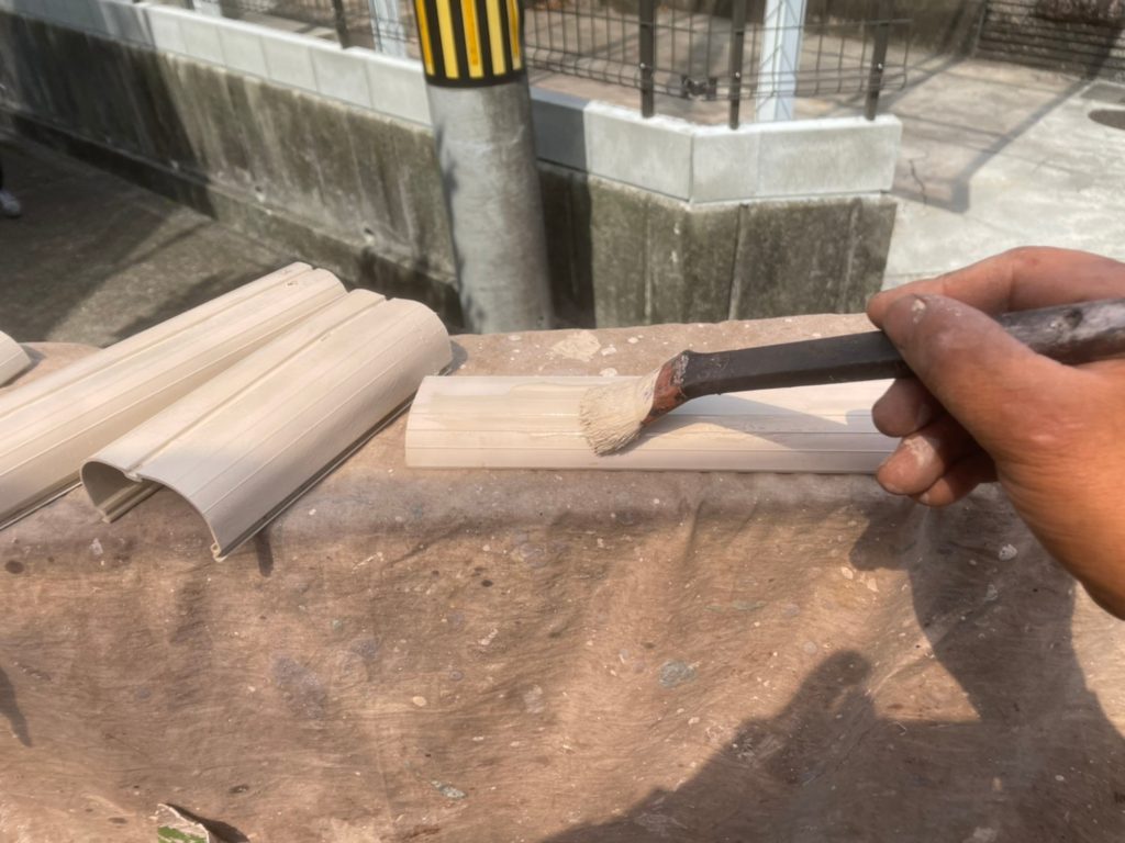 外壁塗装が終わってからカバーも塗装して取り付けていきます。