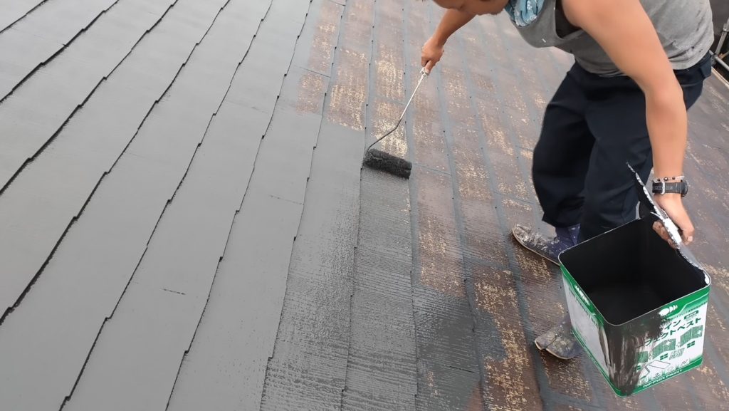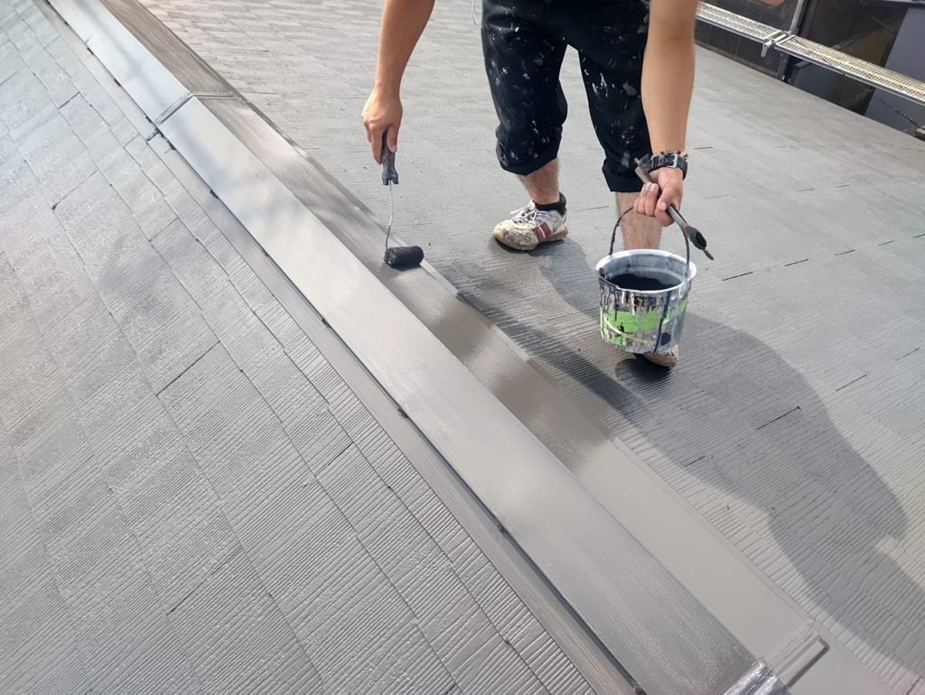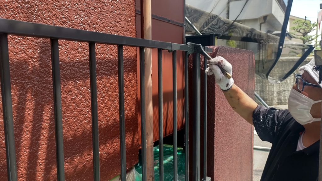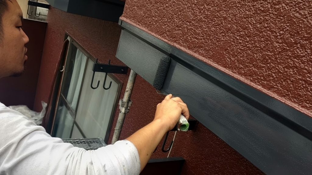 屋根部分の鉄部は錆止めを塗って中塗り、上塗りと3回塗りで仕上げます。