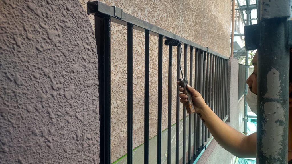 鉄部関係は、錆びている箇所をケレン作業で除去し