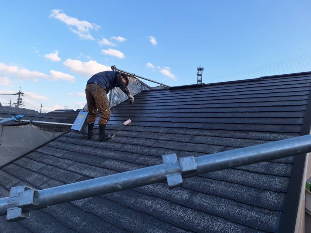 本日は屋根塗装の下塗りと養生関係を進めました。