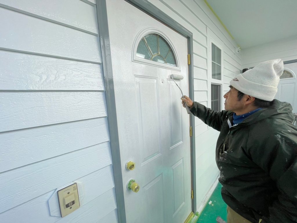 玄関扉など付帯部の塗装と同時進行で進めています! 仕上がりが楽しみです!